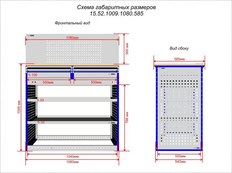 Комплект ЗМК 15.52.1009.1080.585 предназначен для комплексного оснащения сервисных автомобилей системой хранения инструмента с целью осуществления выездного сервиса, монтажа или ремонта. Используется в организациях, занимающихся ремонтом сельскохозяйственной и погрузочной техники, дорожно-ремонтных служб и других. Все элементы стеллажей изготовлены из высококачественной стали толщиной 1 мм. Рамы из профильной стальной трубы квадратного сечения 20х20 мм имеют порошковое полимерное покрытие синего цвета. Все выдвижные ящики, дверные блоки и откидные крышки оснащены специальными фиксаторами, которые не позволяют им выдвигаться и открываться при движении автомобиля. Шаг отверстий для крепления составляет 52 мм. Перфорированные стенки стеллажа позволяют фиксировать с помощью резиновых креплений вспомогательный инструмент или оборудование. Допустимая нагрузка на все ящики до 35 кг, на все полки до 50 кг, на столешницы до 100 кг. В комплект стеллажа входят все необходимые метизы, фиксаторы, кронштейны и усилители. Они поставляются в разобранном виде в надежной упаковке.